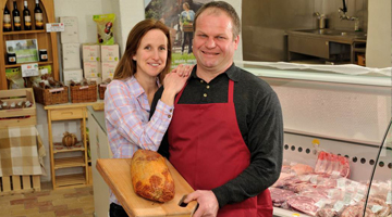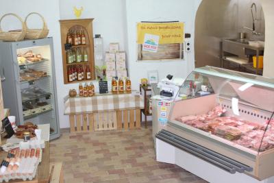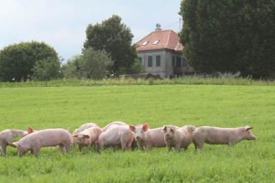 Viande de porcs élevés en plein air, poulets fermiers, oeufs de la ferme, vin, huile de colza, huile de tournesol.