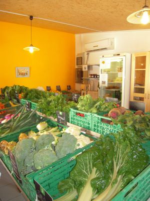Légumes et fruits de saison, fleurs à couper, produits laitiers, viandes diverses.