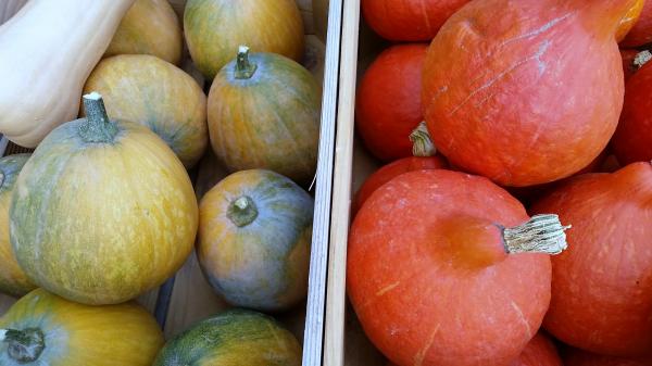 Oeufs, Raisinée, jus de pomme, huile de colza, huile de noix, huile de tournesol, pommes de terre, courgettes à l'aigre-doux, pâtissons, courgettes, courges diverses variétés.